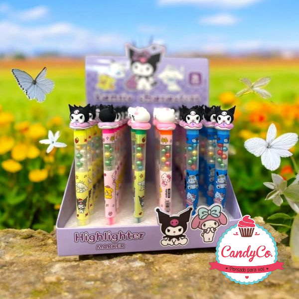 Resaltador de Kuromi, Sanrio y Kitty con Pelotitas