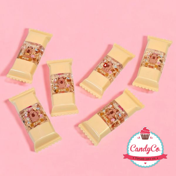 Brillo Labial Líquido con Forma de Envoltura de Caramelo, Chocolate Carpinhco, Capybara, Capibara, Lip Gloss Hold Morning