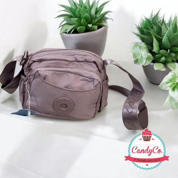 Bandolera Lisa con Doble Cierre, Bolsillos y Correa con Trama