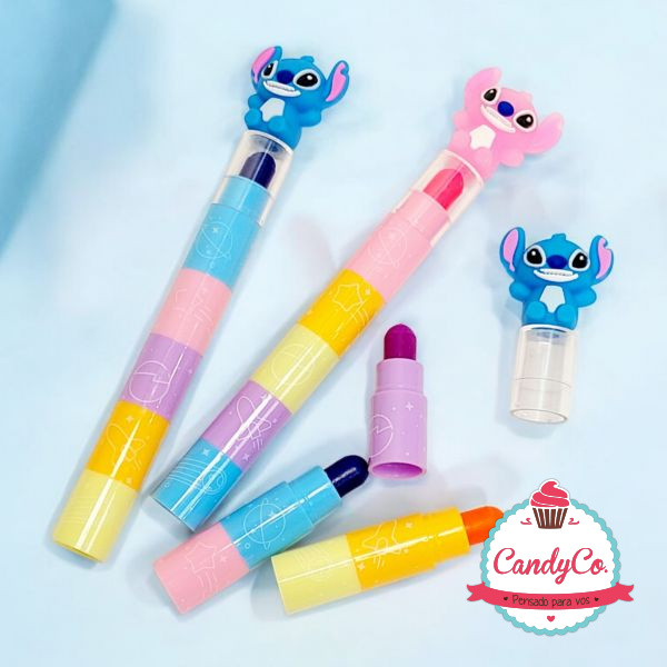 Crayones de Colores Apilables X5 con Muñeco de Silicona Stitch