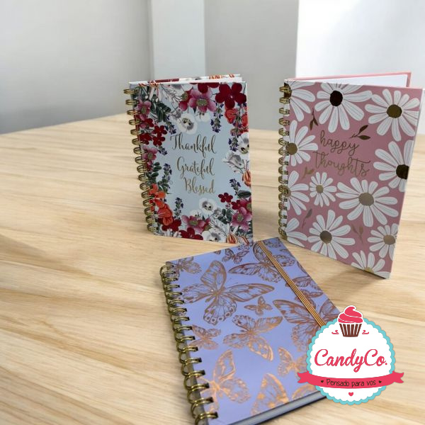 Cuaderno Tapa Dura Estampado con Elástico y Diseño de Flores, Mariposas