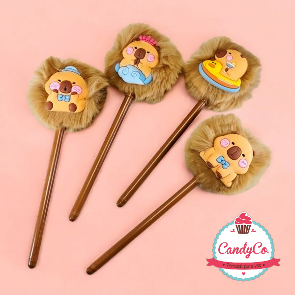 Lapicera con Tapa con Pompón y Muñeco de Silicona Carpincho, Capybara, Capibara