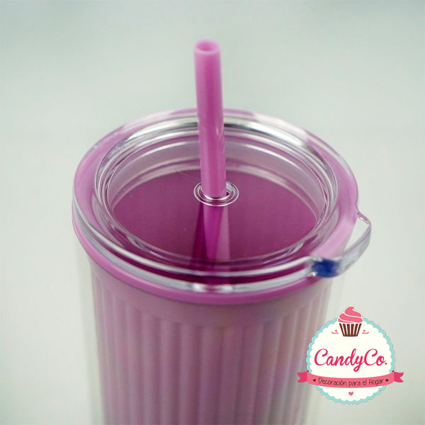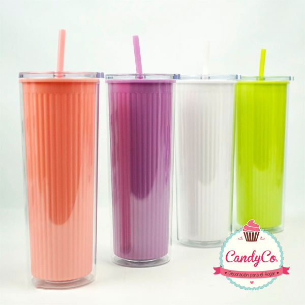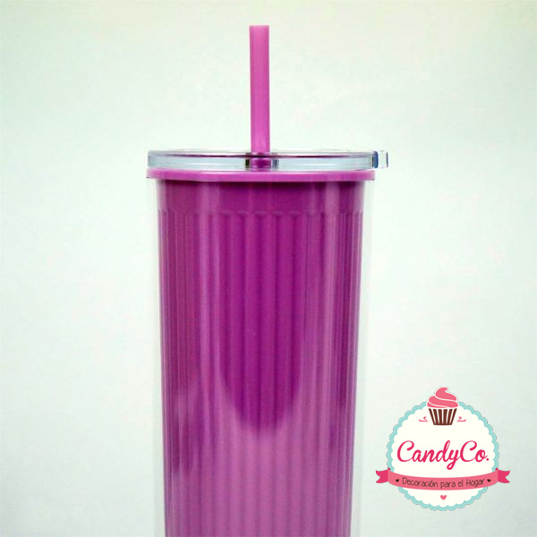 Vaso Alto de Plástico con Diseño Rayado y Sorbete 700Ml