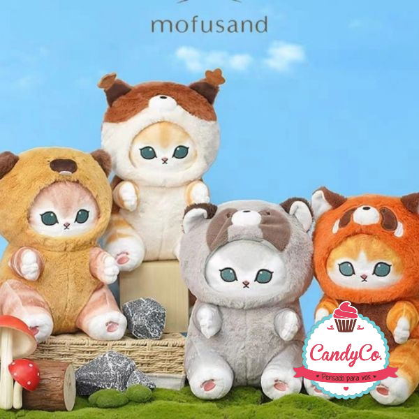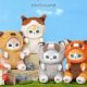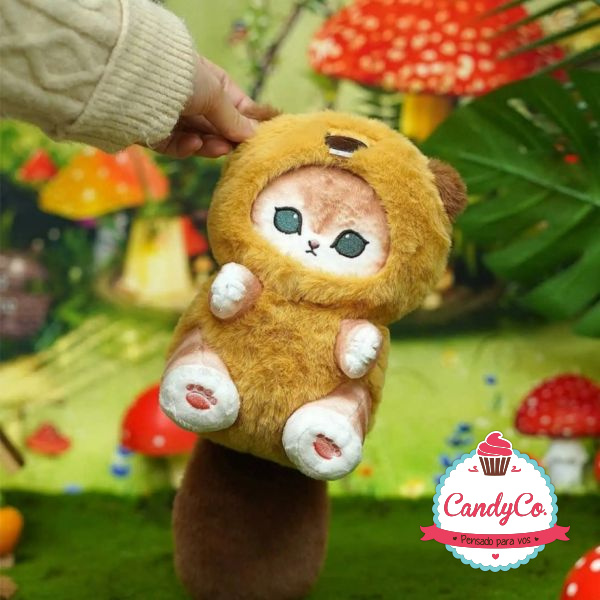 Peluche de Gato con Disfraz de Capibara, Zorro Naranja y Mapache Gris de 20Cm