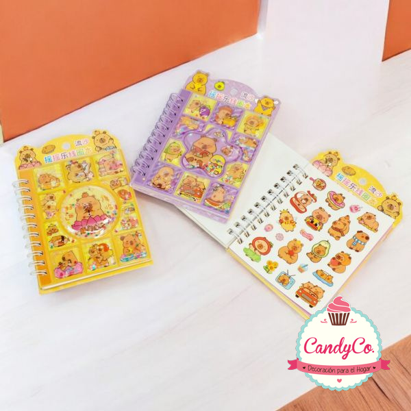 Mini Libreta de Anillada con Diseño de Carpincho, Capibara, Capybara con Líquido, Figuras, y Stickers
