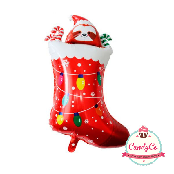 Globo Bota, Media de Navidad con Oso Perezoso y Bastones de Caramelo 40Cm/ Oso