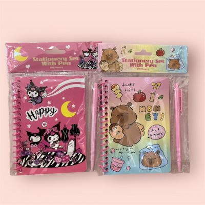 Set de Libreta Anillada Estampada con Diseño de Stitch, Carpincho, Capybara, Capibara, Unicornio, Kuromi, Dinosaurio y Lapicera Retráctil