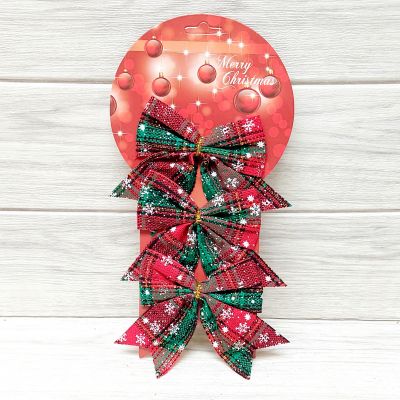 Set de Moños Chicos X3 Estampados Navidad con Diseño Rústico